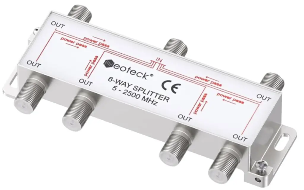 Monoprice has designed this 6-way coax cable splitter which comes with a specially built F-Type screw for VCR and cable TV antennas. One input and six outputs allow you to connect your computer, TV, modem, cable boxes, and other devices at the same time.