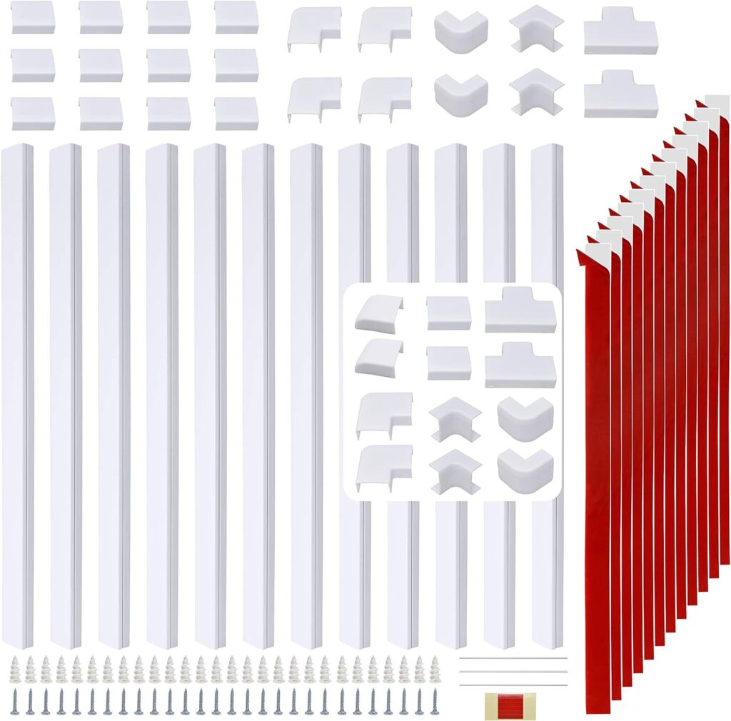 The Cable Channel package includes all essential assembly components, such as T-joints, L-joints, internal and external corners, and various connectors. Furthermore, the double-sided self-adhesive tape guarantees a stable and enduring attachment.
